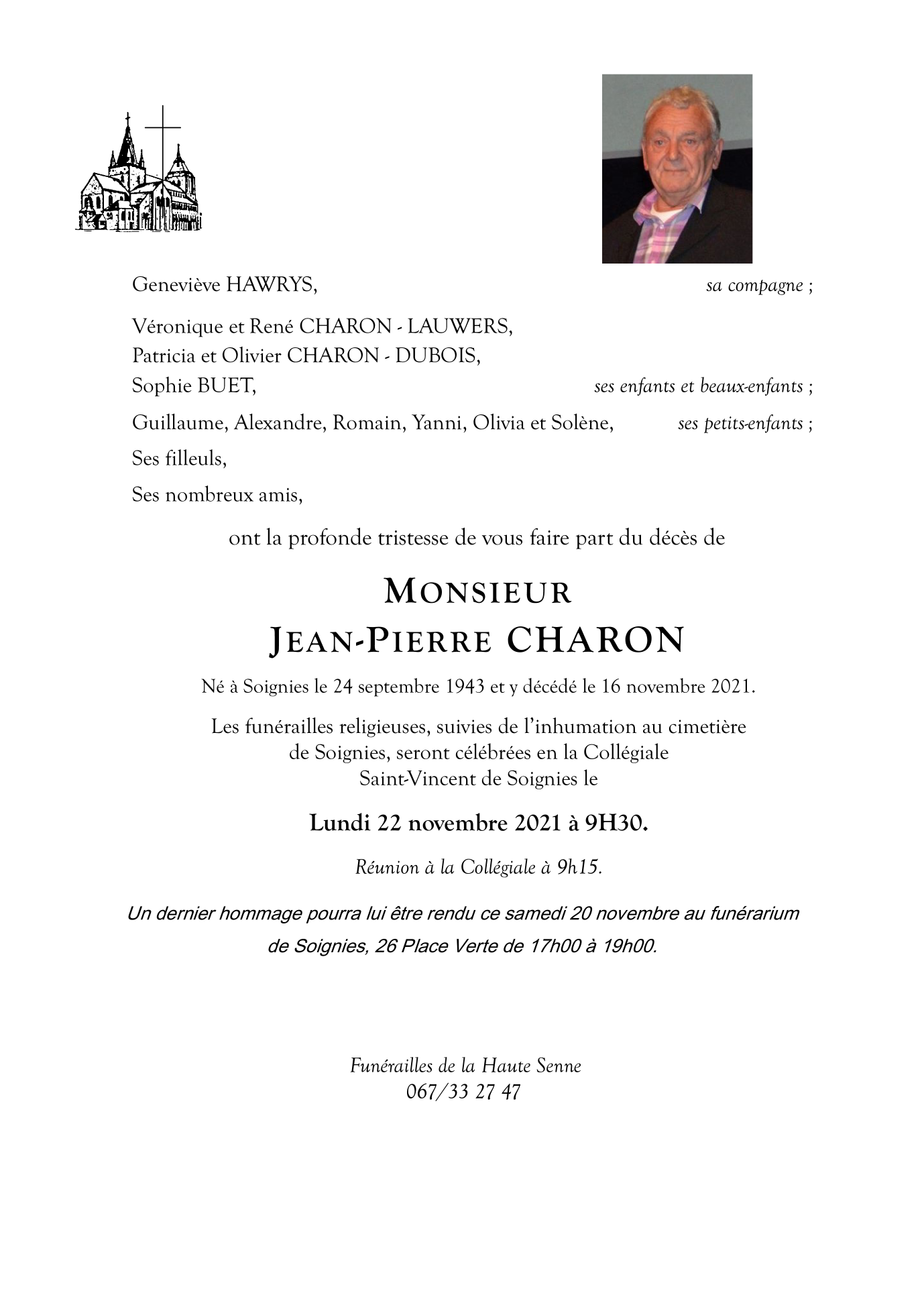 Fallecido en Soignies (7060) el martes, 16 de noviembre de 2021 a la edad de 78 años