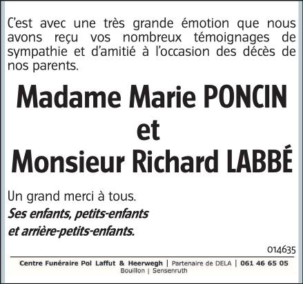 Fallecida en Libramont-Chevigny (6800) el sábado, 6 de noviembre de 2021 a la edad de 85 años