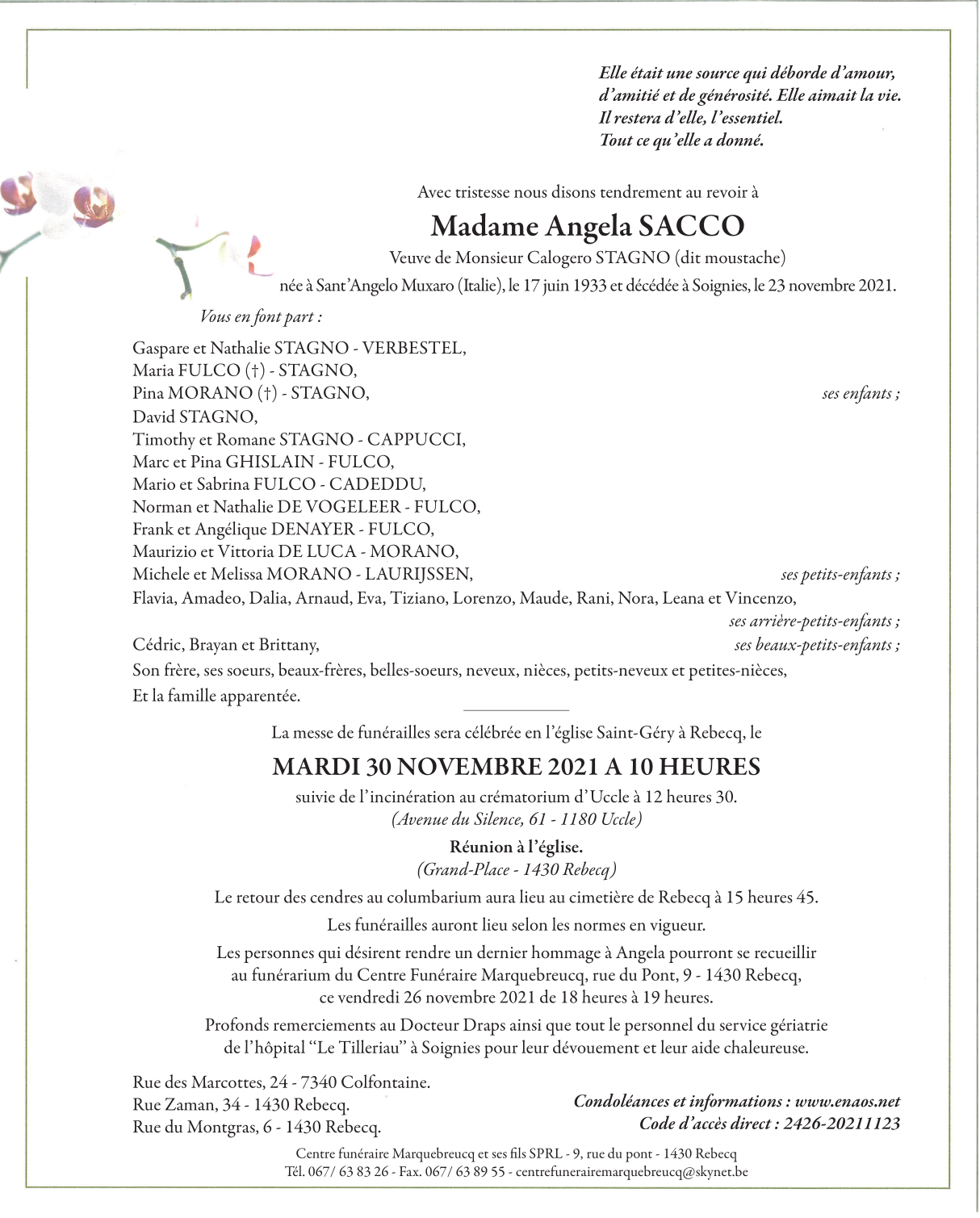 Madame Angela SACCO