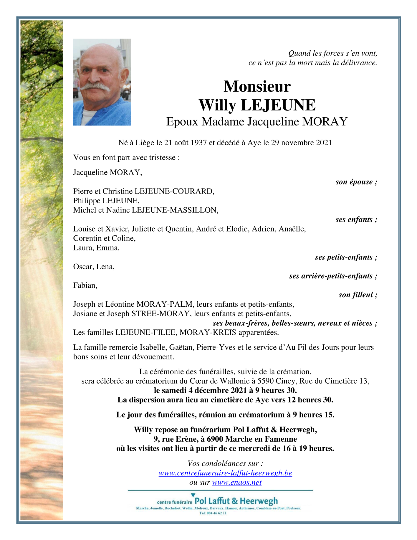 Fallecido en Aye (6900) el lunes, 29 de noviembre de 2021 a la edad de 84 años