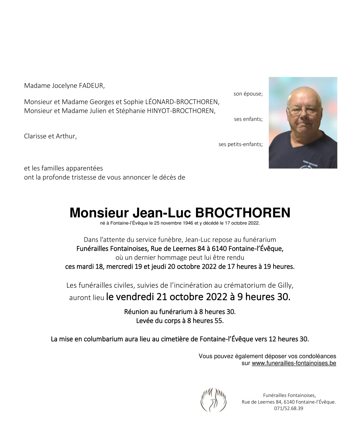 Fallecido en Fontaine-l'Evêque (6140) el lunes, 17 de octubre de 2022 a la edad de 75 años