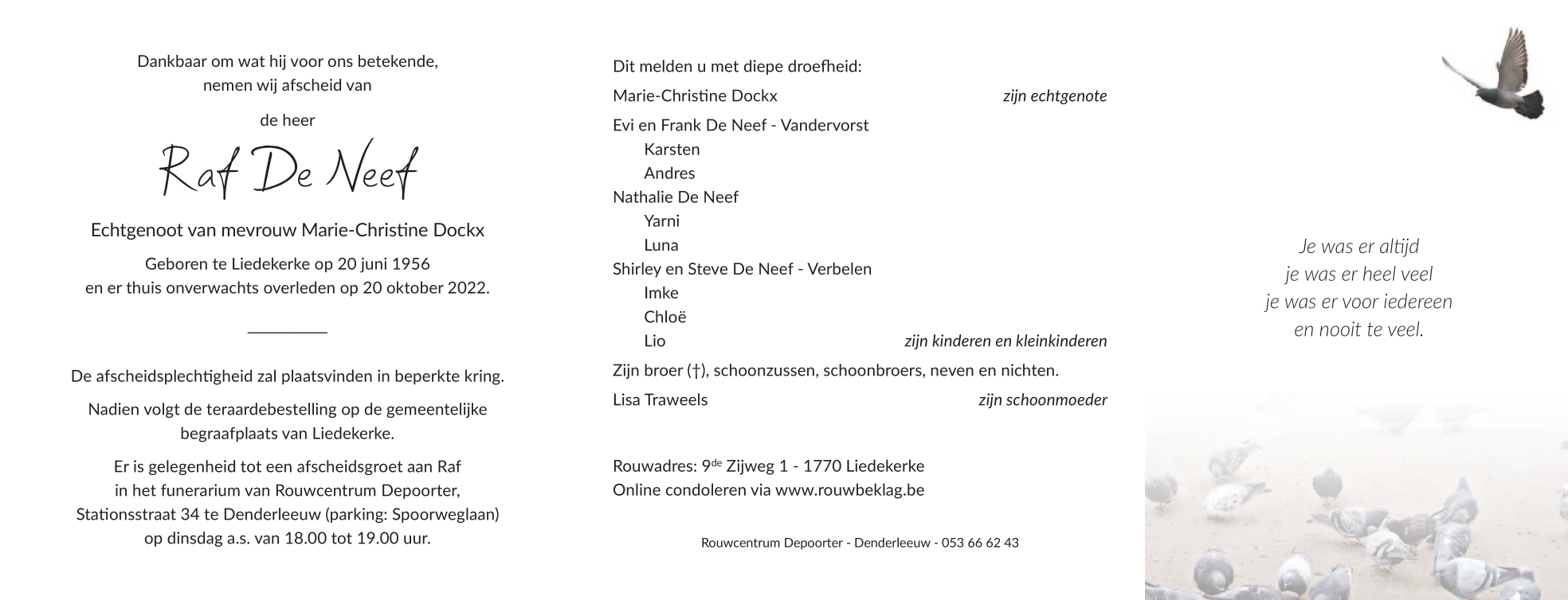 Décédé à Liedekerke (1770) le jeudi 20 octobre 2022 à l'âge de 66 ans
