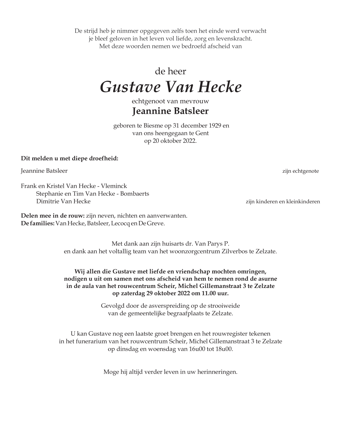 Died in Gent (9000) on 20 October 2022 at the age of 92 years