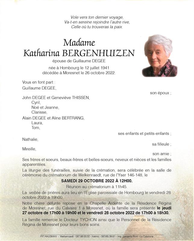 Décédée à Moresnet (4850) le mercredi 26 octobre 2022 à l'âge de 81 ans