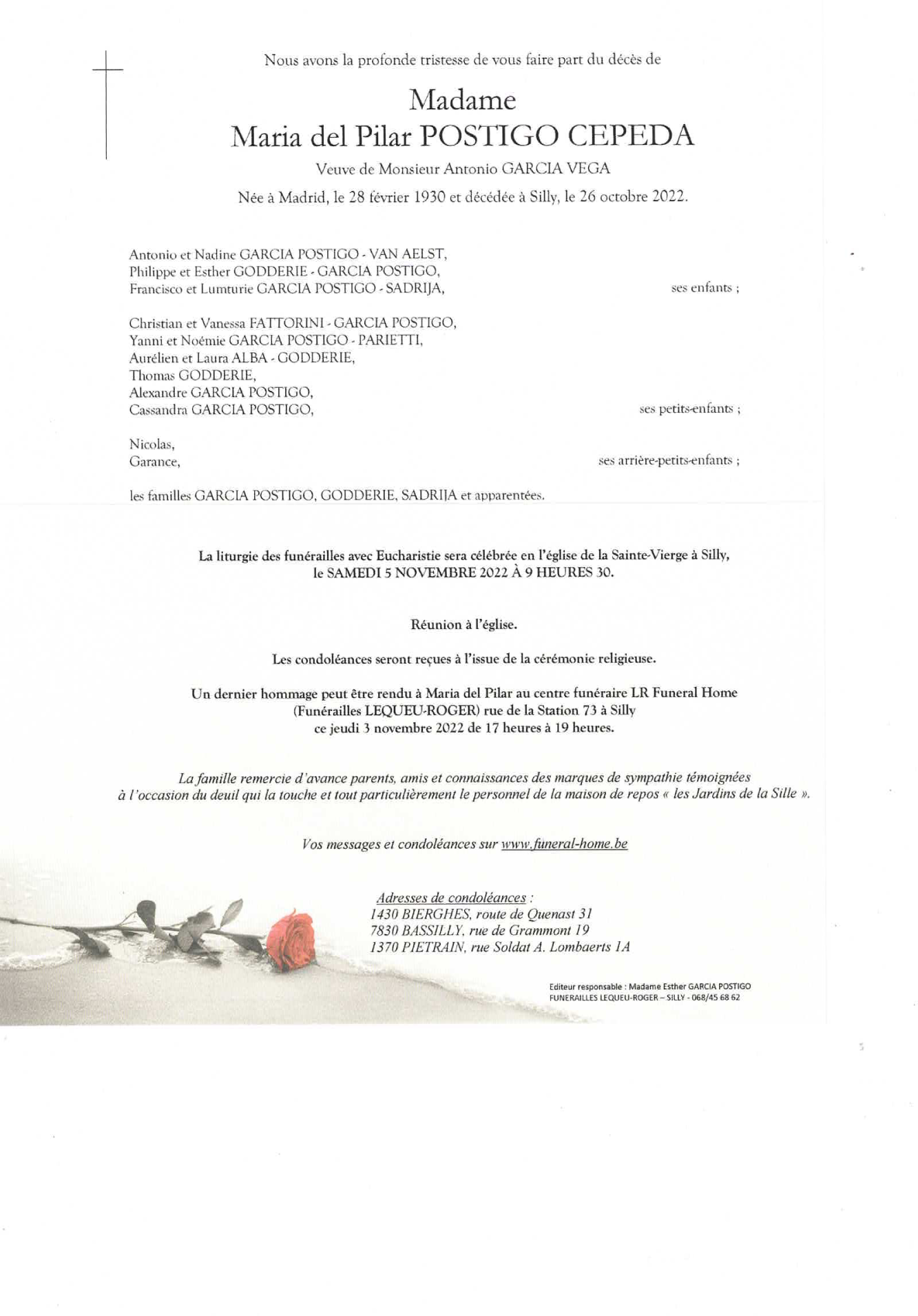 Décédée à Silly (7830) le mercredi 26 octobre 2022 à l'âge de 92 ans