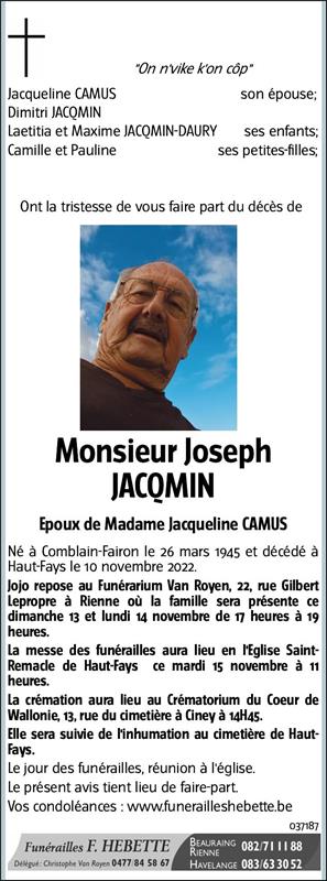 Overleden te Haut-Fays (6929) op donderdag 10 november 2022 op 77-jarige leeftijd