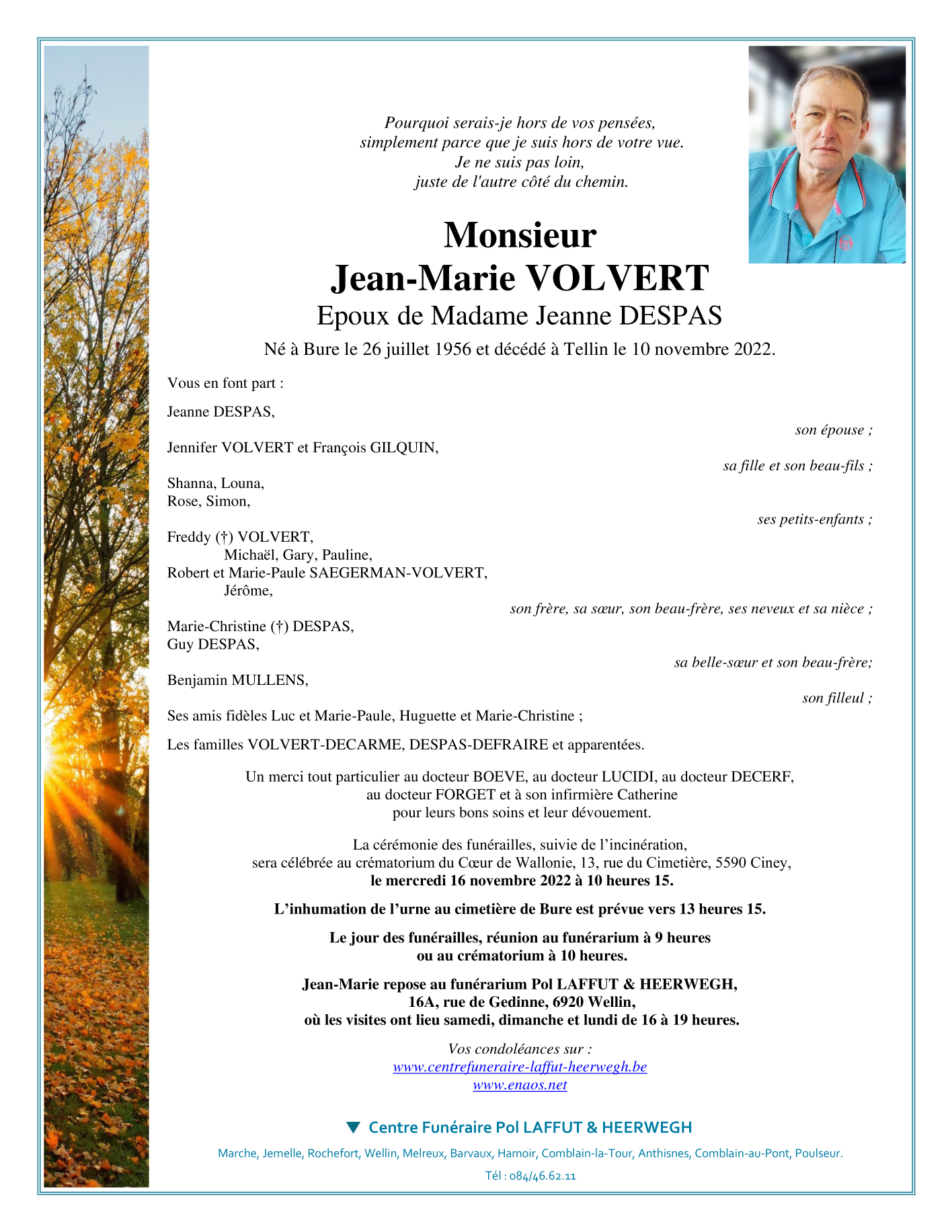 Overleden te Tellin (6927) op donderdag 10 november 2022 op 66-jarige leeftijd