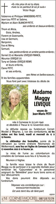 Décédée à Theux (4910) le jeudi 10 novembre 2022 à l'âge de 82 ans