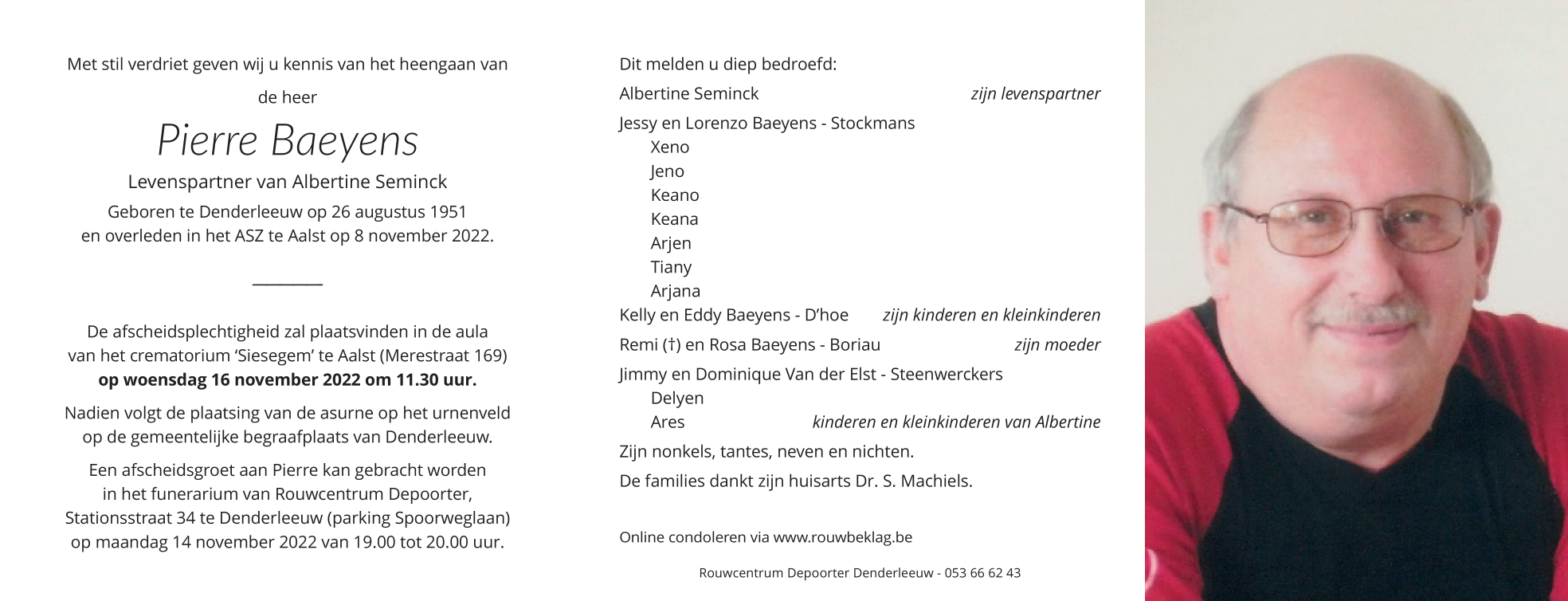 Décédé à Aalst (9300) le mardi 8 novembre 2022 à l'âge de 71 ans