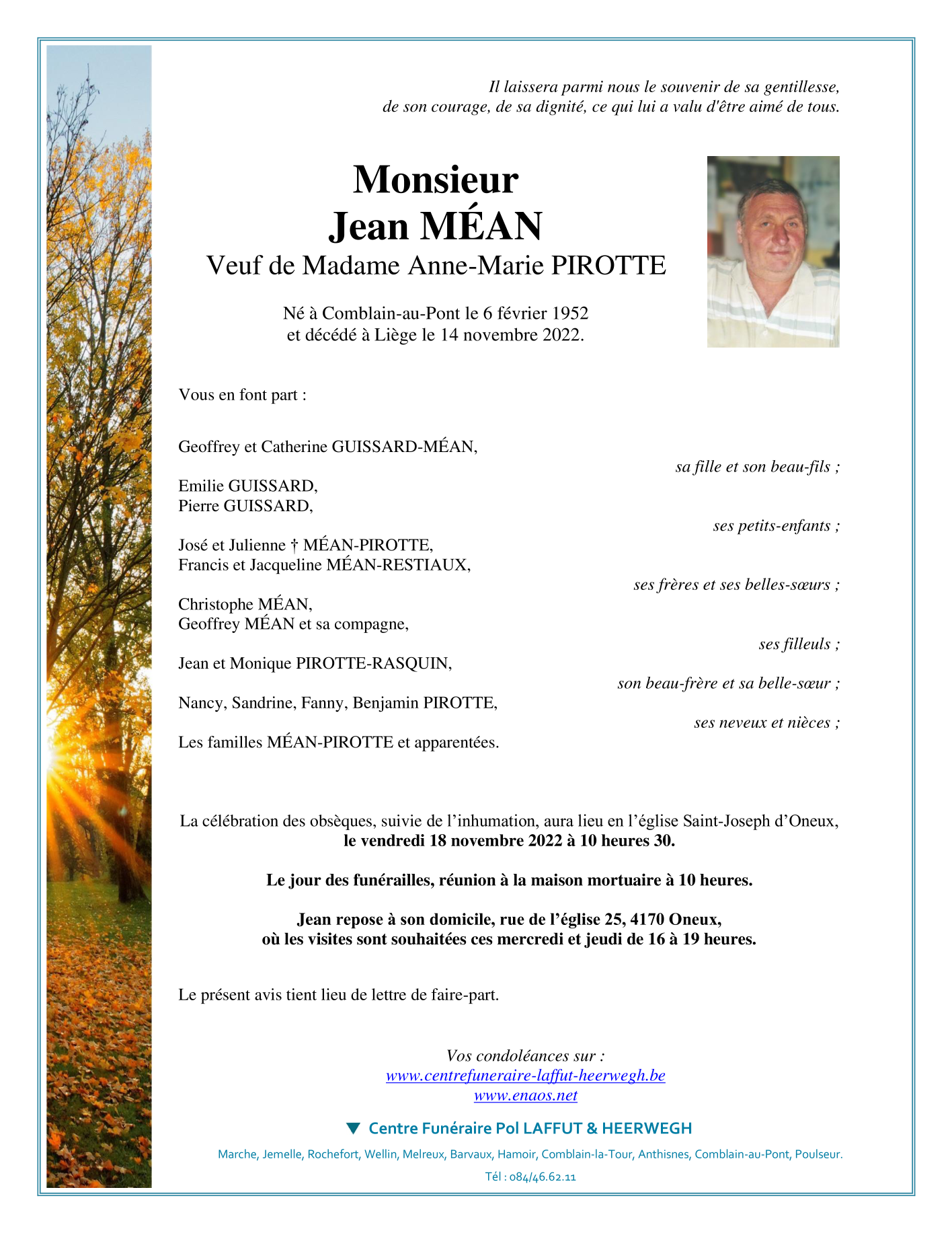 Décédé à Liège (4000) le lundi 14 novembre 2022 à l'âge de 70 ans