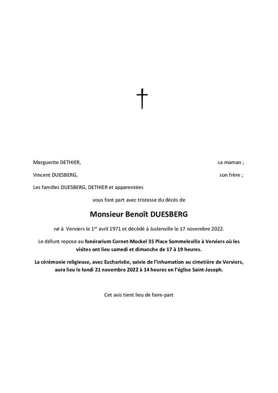 Died in Juslenville (4910) on 17 November 2022 at the age of 51 years