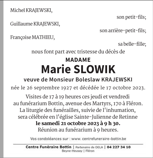 Veuve de Monsieur Bolesslaw KRAJWESKI