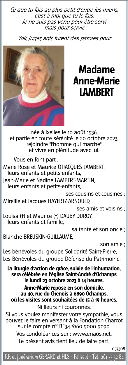 Décédée à Libramont (6800) le vendredi 20 octobre 2023 à l'âge de 87 ans