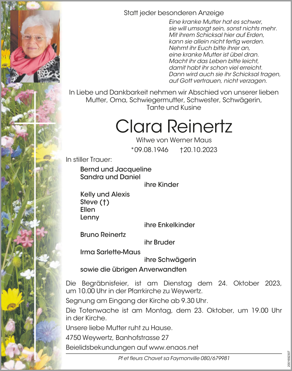 Died in Weywertz (4750) on 20 October 2023 at the age of 77 years