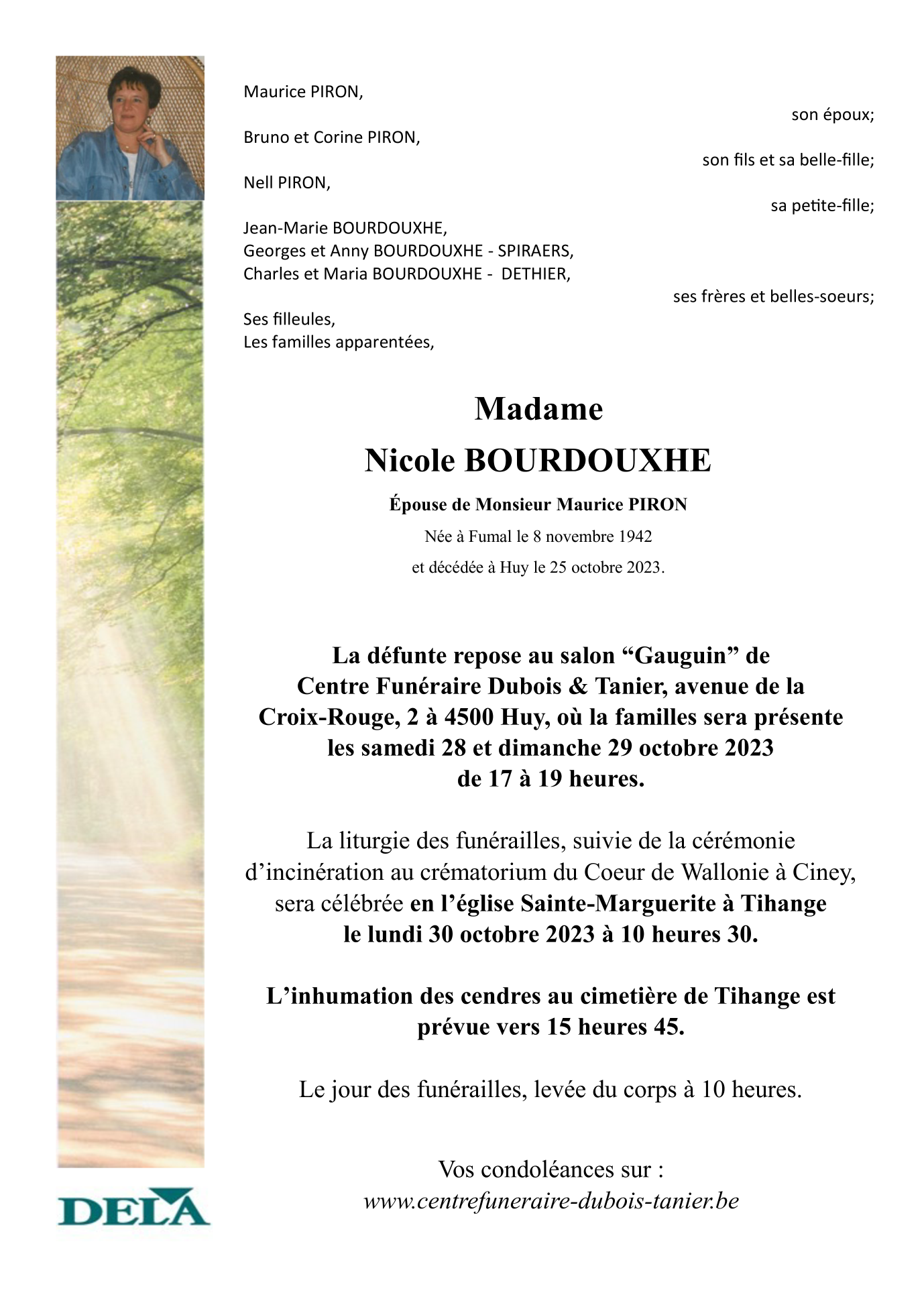 Décédée à Huy (4500) le mercredi 25 octobre 2023 à l'âge de 80 ans