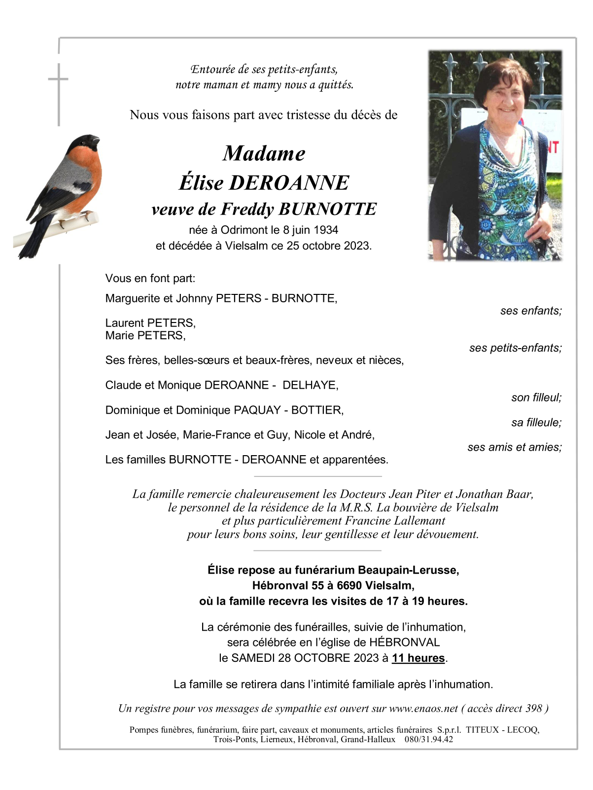 Veuve de Monsieur Freddy BURNOTTE