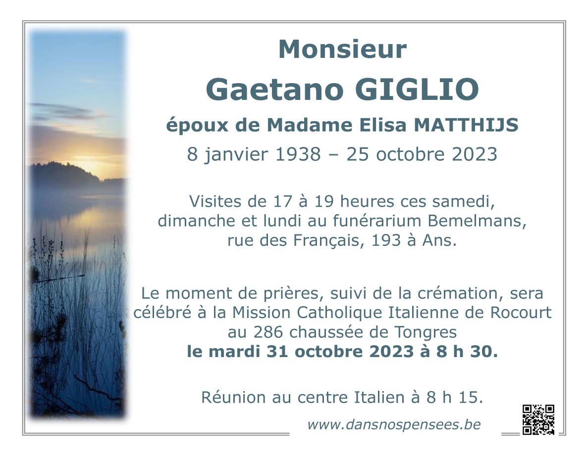 Décédé à Liège (4000) le mercredi 25 octobre 2023 à l'âge de 85 ans