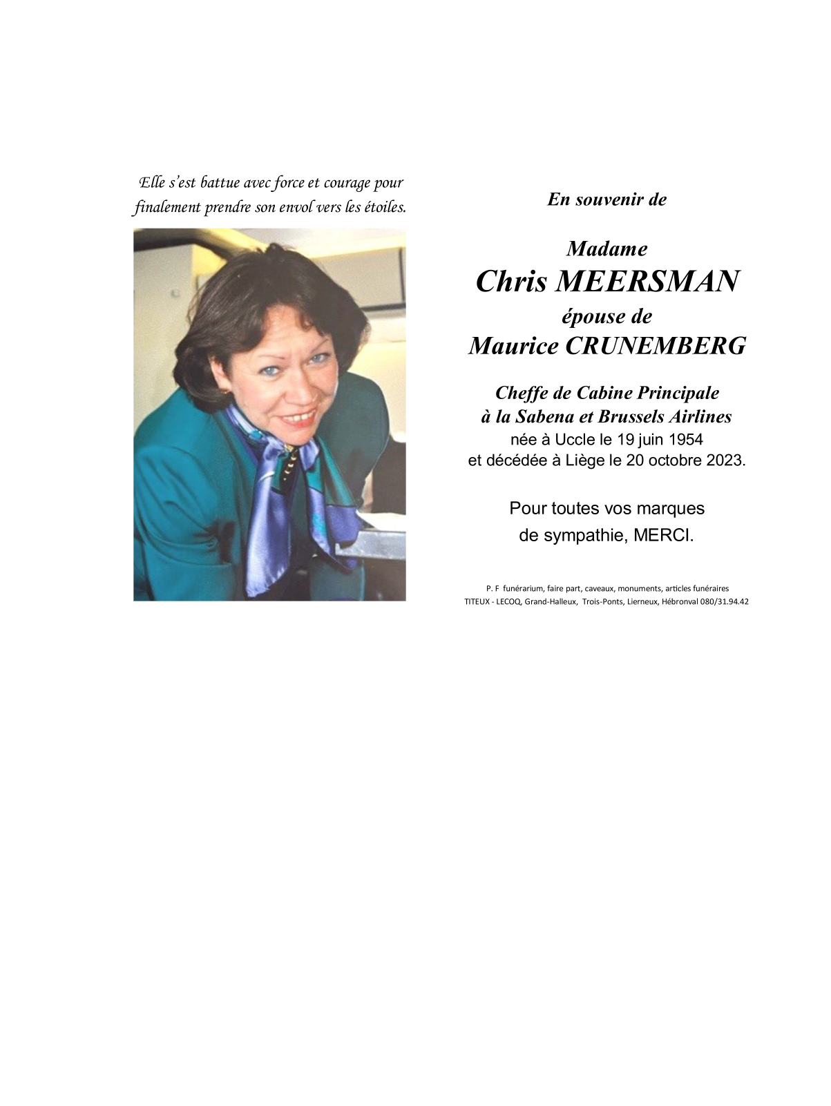 Décédée à Liège (4000) le vendredi 20 octobre 2023 à l'âge de 69 ans