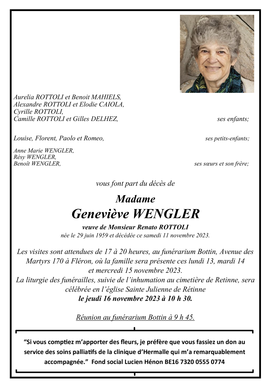 Décédée à Hermalle-sous-Argenteau (4681) le dimanche 12 novembre 2023 à l'âge de 64 ans