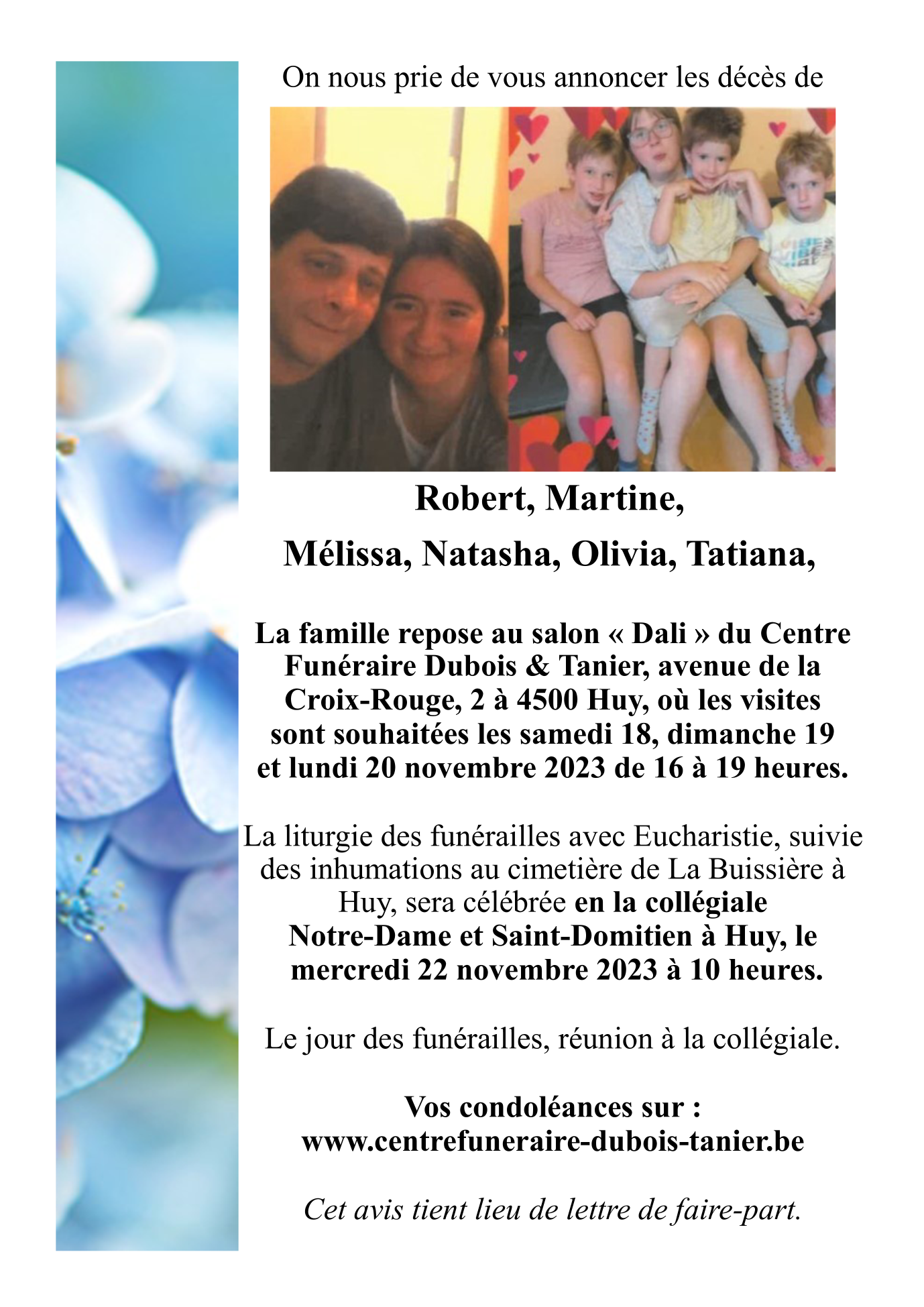 Robert, Martine, Mélissa, Natasha, Olivia, Tatiana BAL, POTELBERG, PIROTTE,
