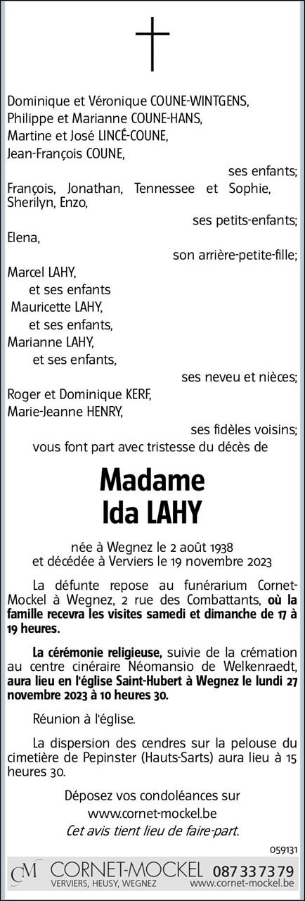 Décédée à Verviers (4800) le dimanche 19 novembre 2023 à l'âge de 85 ans