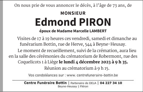 Décédé à Jupille-sur-Meuse (4020) le lundi 27 novembre 2023 à l'âge de 73 ans