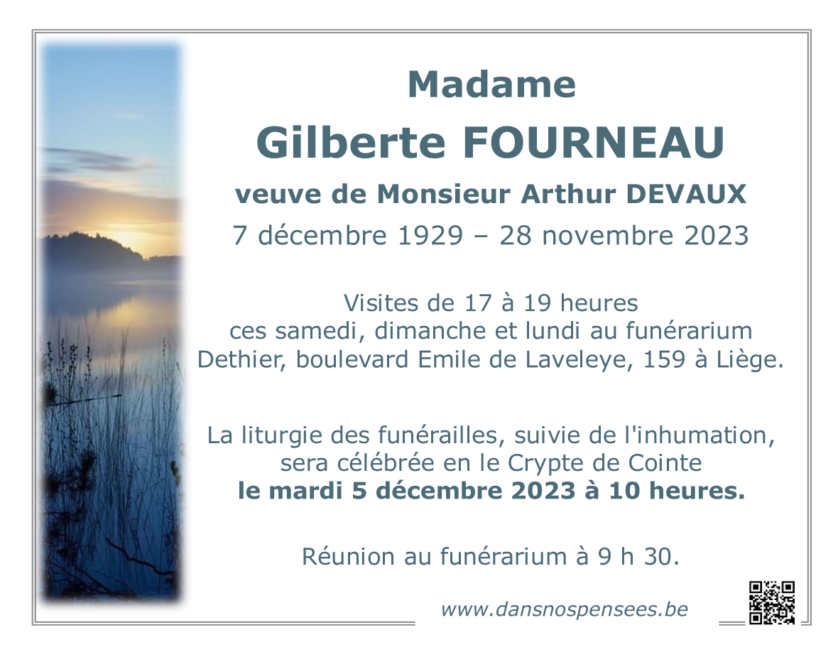 Décédée à Liège (4000) le mardi 28 novembre 2023 à l'âge de 93 ans