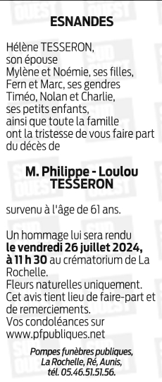 Décédé à La Rochelle (17000, France) le dimanche 21 juillet 2024 à l'âge de 61 ans