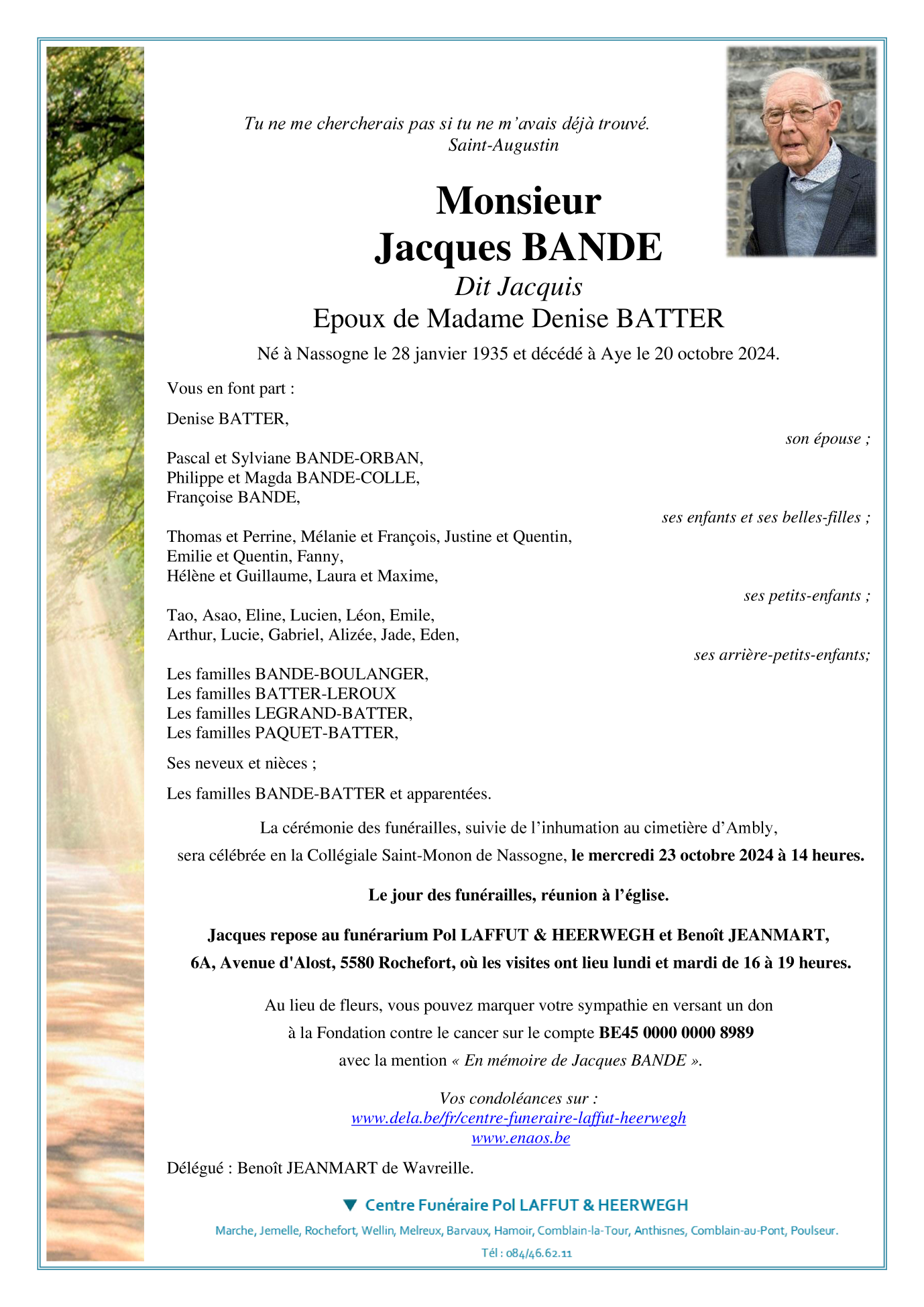 Né à Nassogne (6950) le lundi 28 janvier 1935