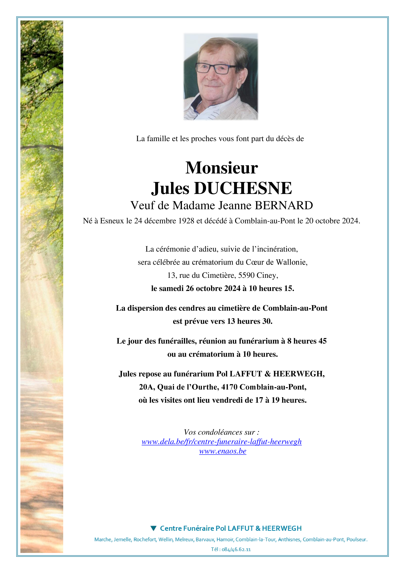 Died in Comblain-au-Pont (4170) on 20 October 2024 at the age of 95 years