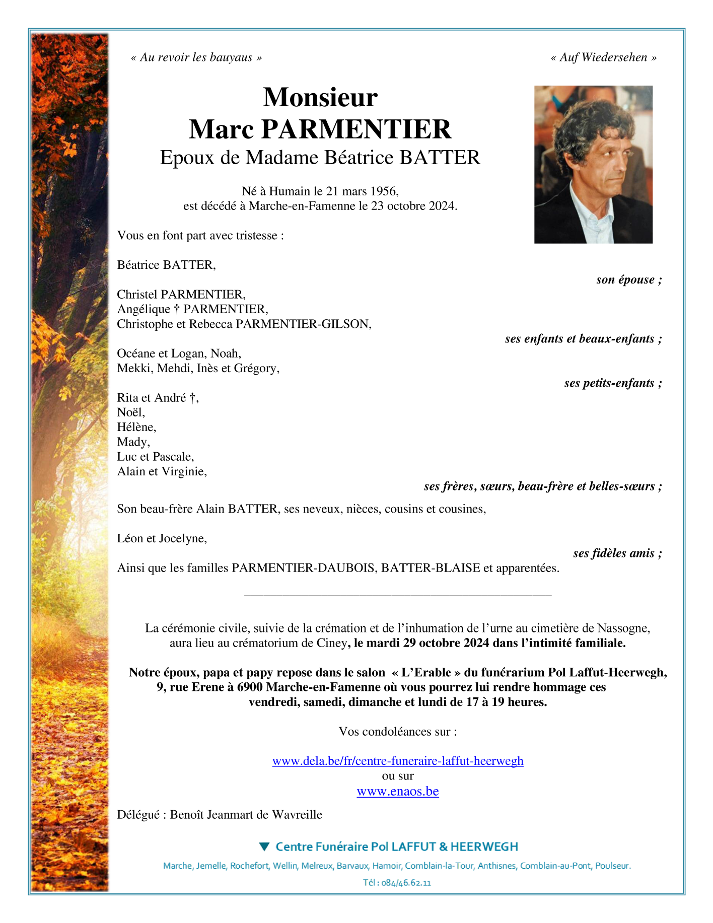 Décédé à Aye (6900) le mercredi 23 octobre 2024 à l'âge de 68 ans