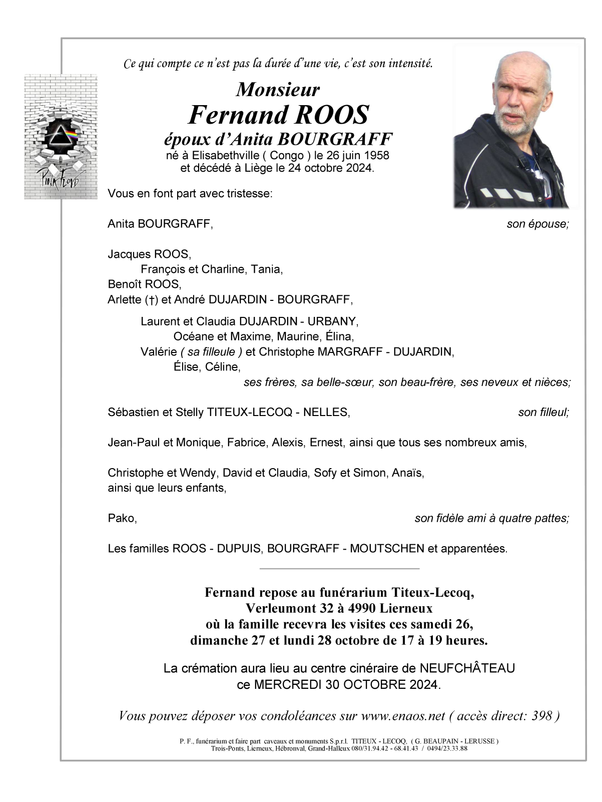 Fallecido en Liège (4000) el jueves, 24 de octubre de 2024 a la edad de 66 años