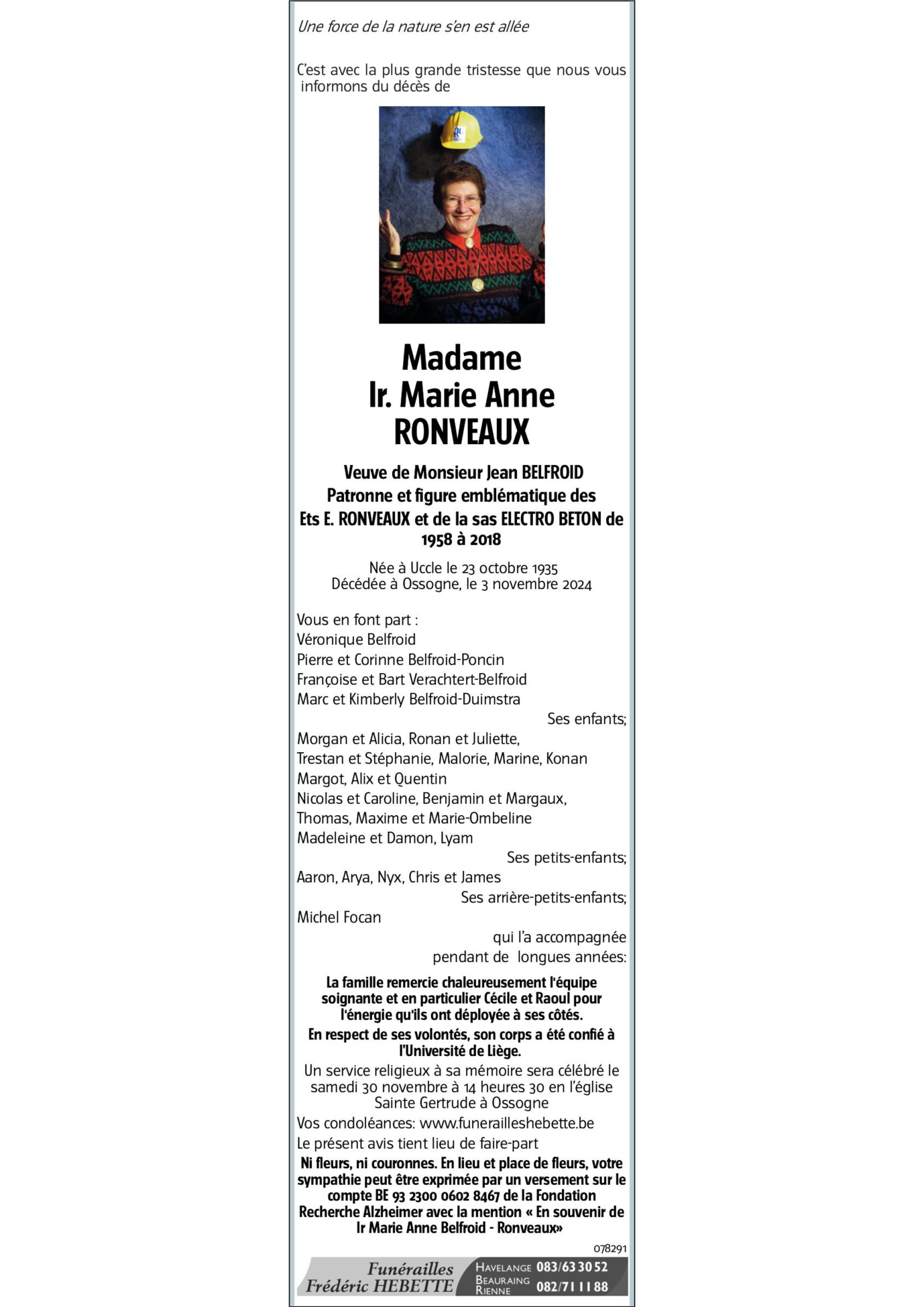 Died in Havelange (5370) on 03 November 2024 at the age of 89 years