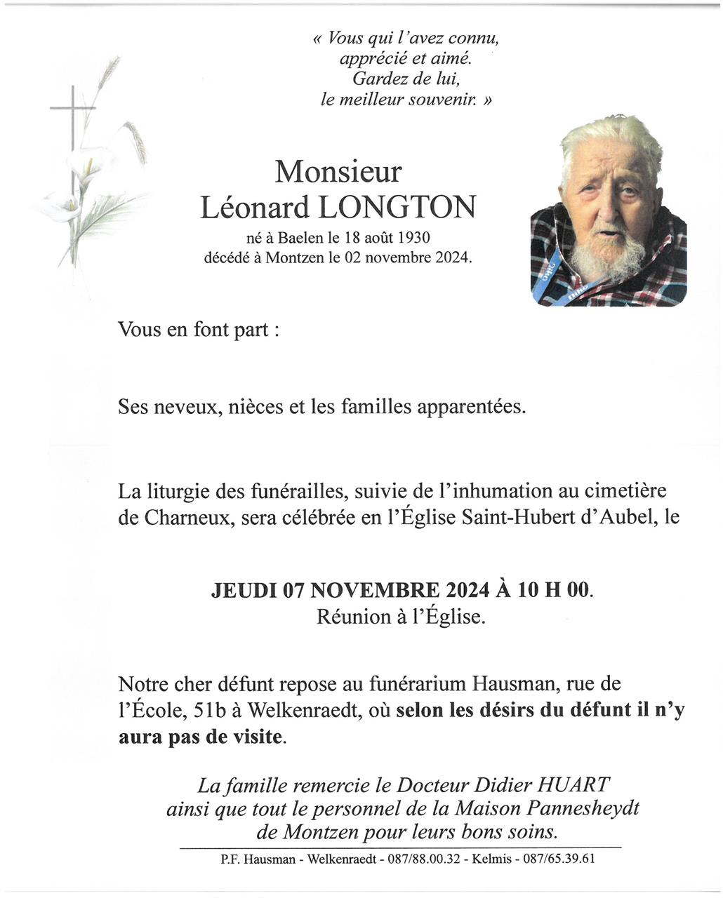 Décédé à Montzen (4850) le samedi 2 novembre 2024 à l'âge de 94 ans