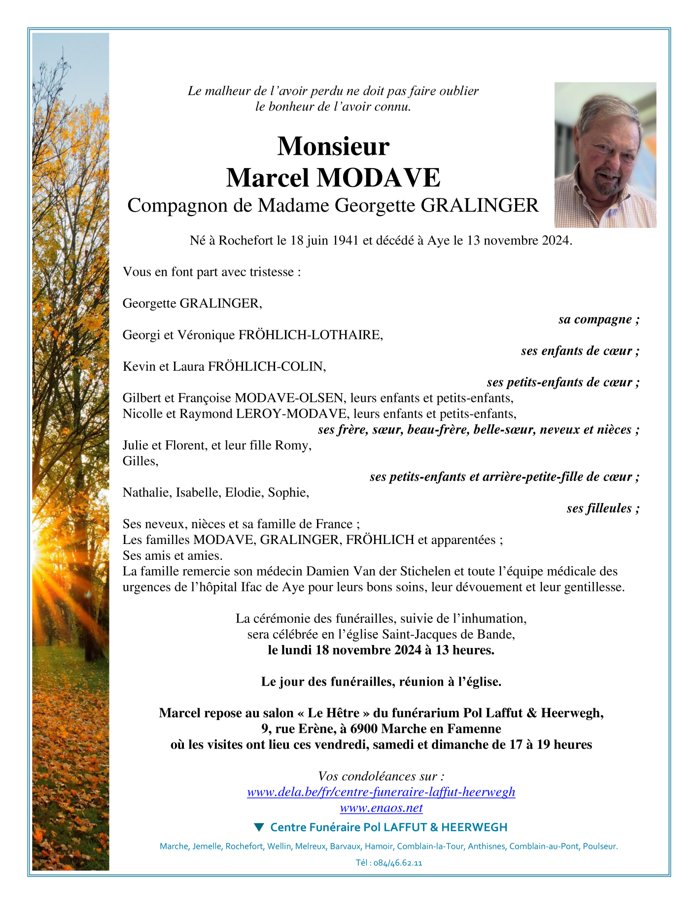 Fallecido en Aye (6900) el miércoles, 13 de noviembre de 2024 a la edad de 83 años