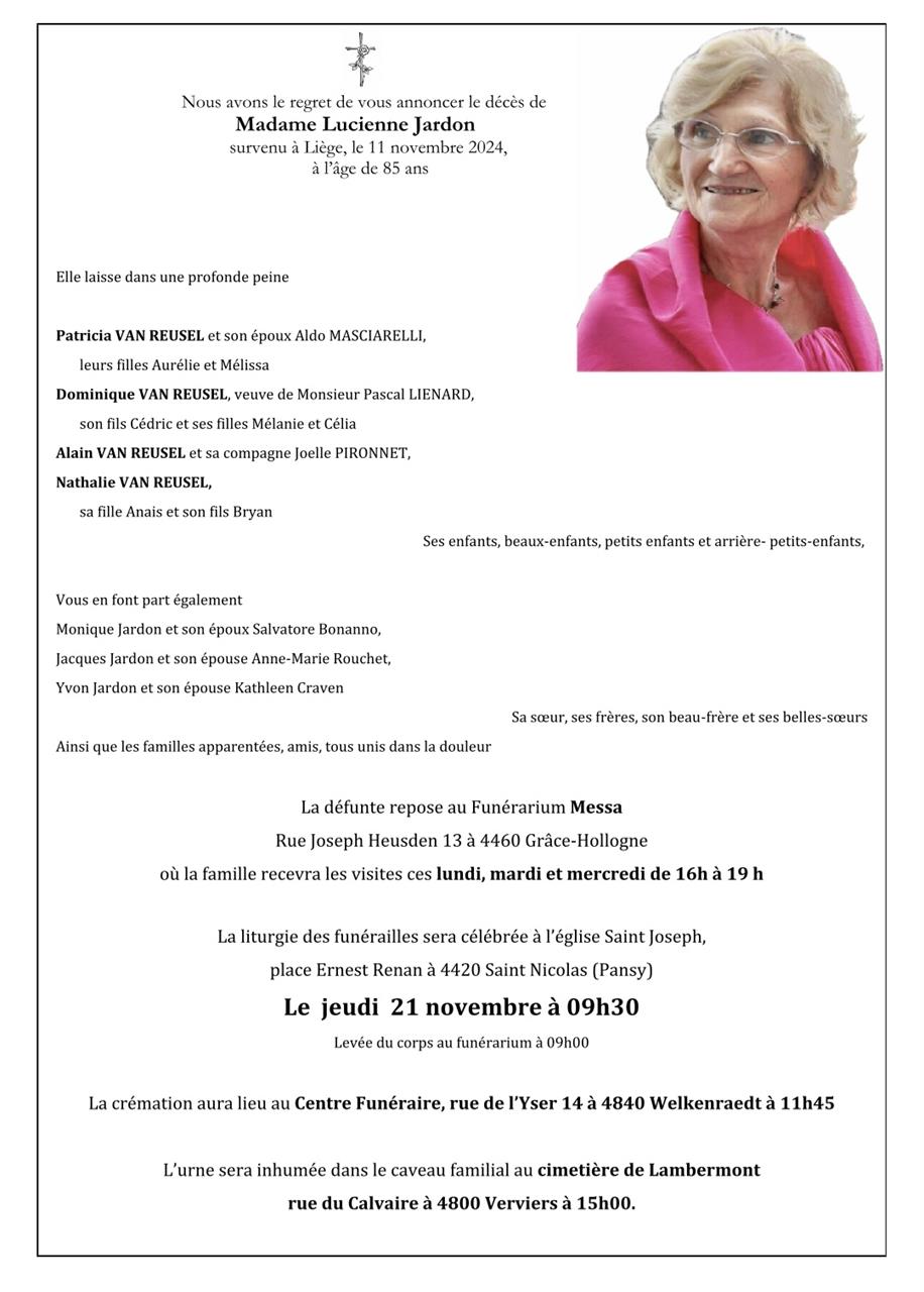Overleden te Liège (4000) op maandag 11 november 2024 op 85-jarige leeftijd