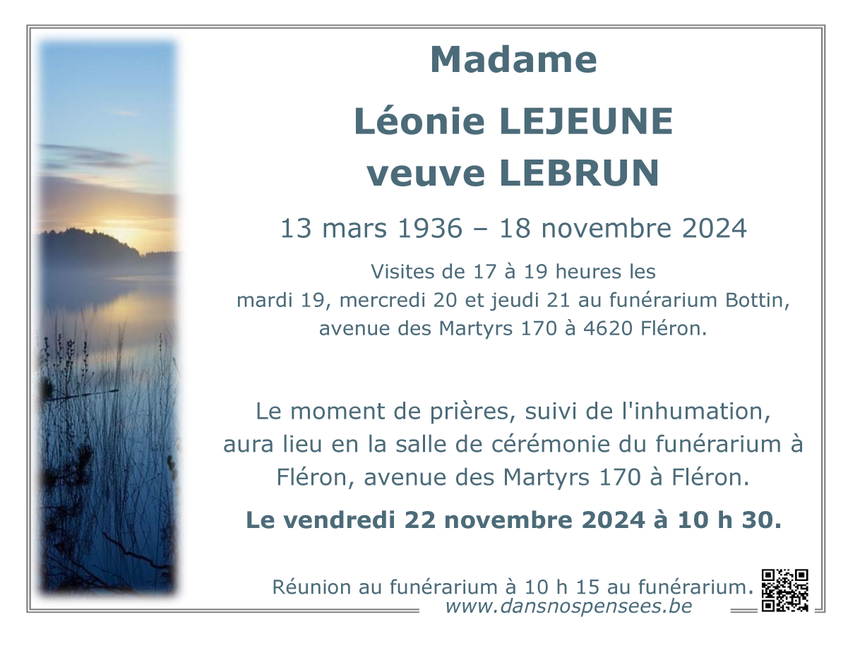 Madame Léonie LEJEUNE, veuve LEBRUN