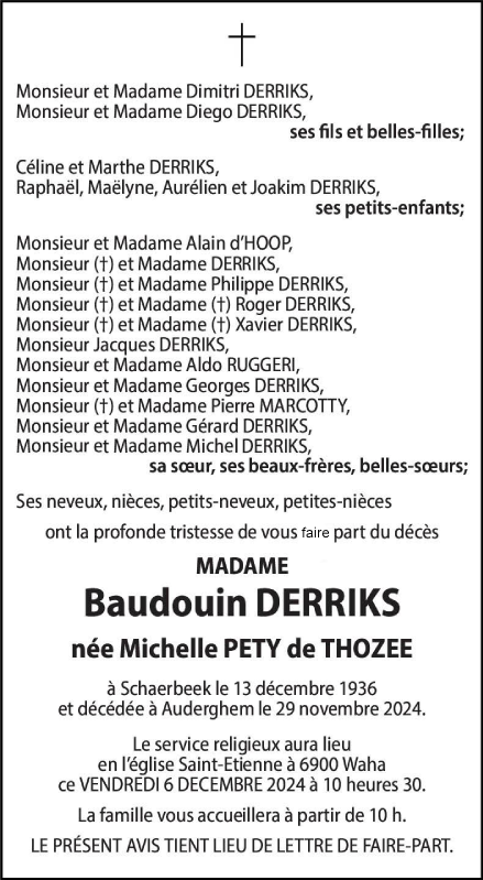 Fallecida en Auderghem (1160) el viernes, 29 de noviembre de 2024 a la edad de 87 años