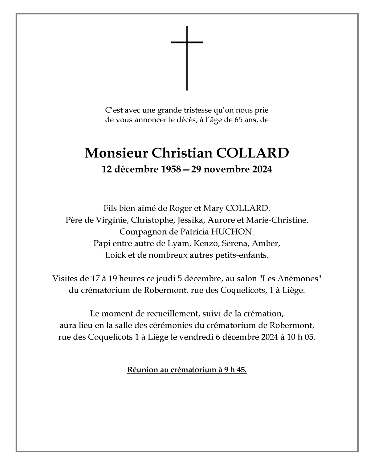 Décédé à Liège (4000) le vendredi 29 novembre 2024 à l'âge de 65 ans
