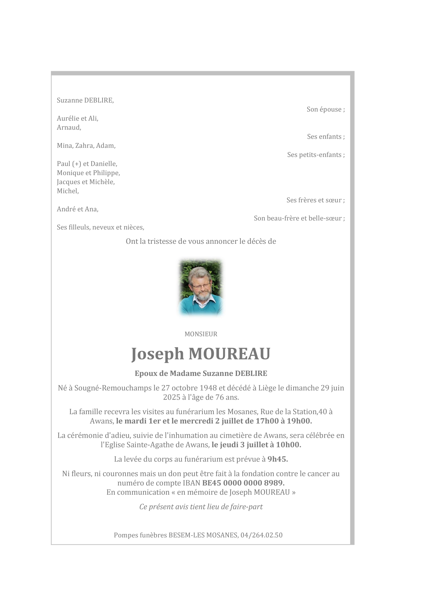 Décédé à Liège (4000) le dimanche 29 juin 2025 à l'âge de 76 ans