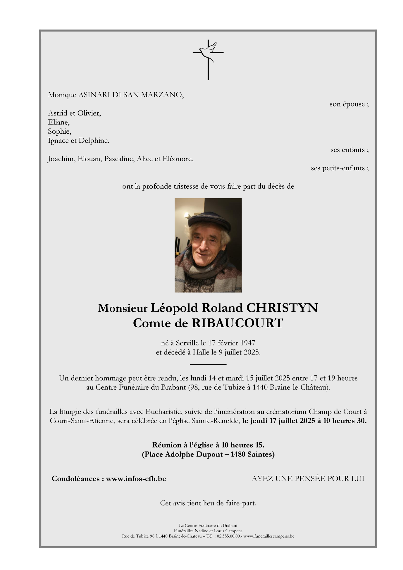 Décédé à Halle (1500) le mercredi 9 juillet 2025 à l'âge de 78 ans