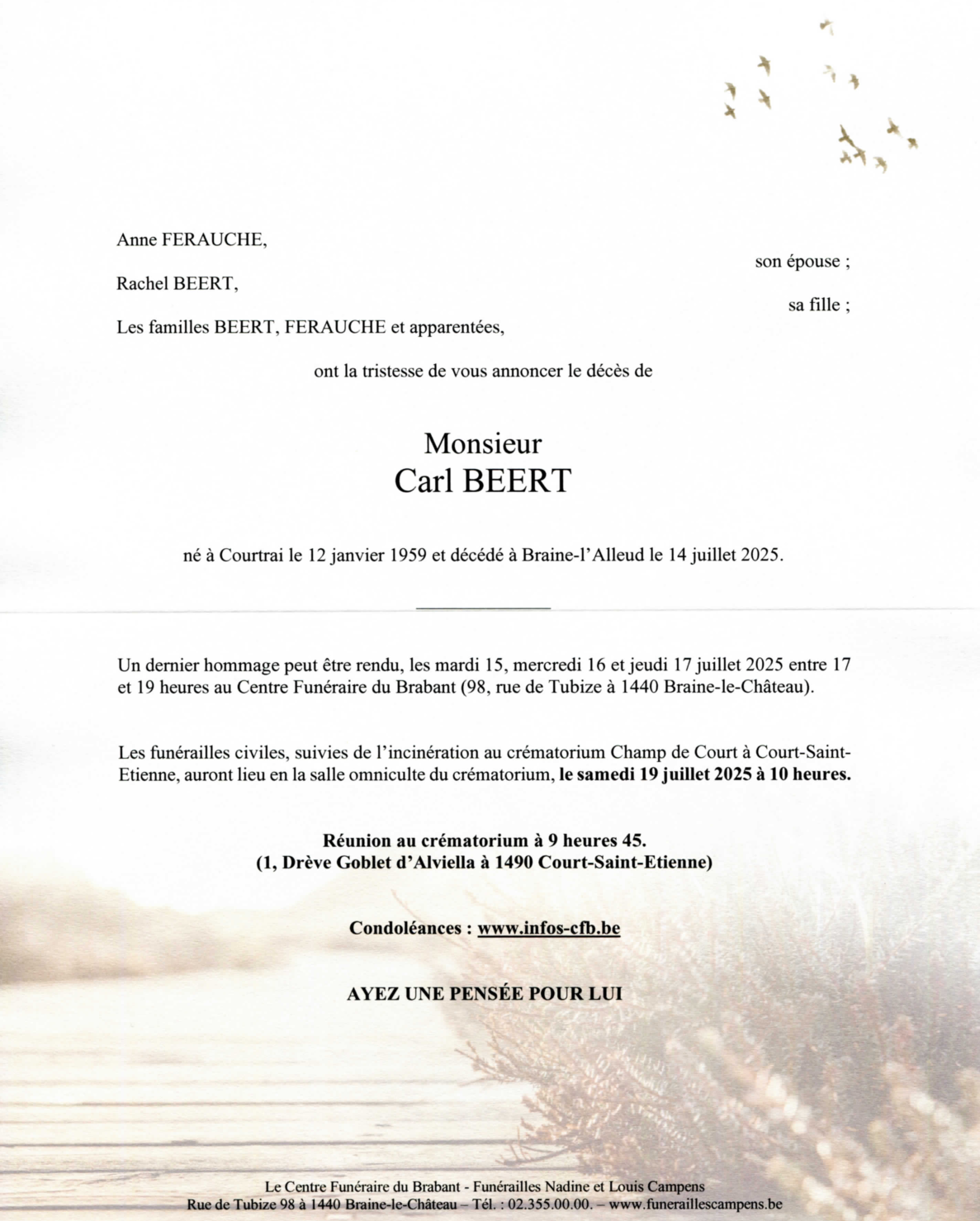 Décédé à Braine-l'Alleud (1420) le lundi 14 juillet 2025 à l'âge de 66 ans