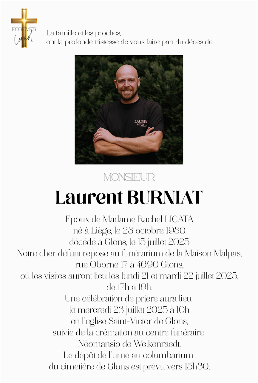 Décédé à Glons (4690) le mardi 15 juillet 2025 à l'âge de 44 ans