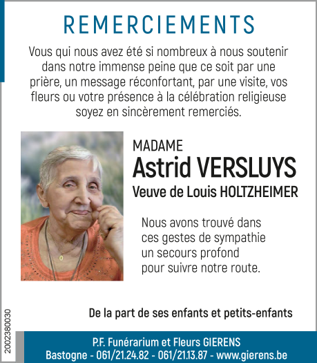 Décédée à Verviers (4800) le jeudi 10 juillet 2025 à l'âge de 87 ans