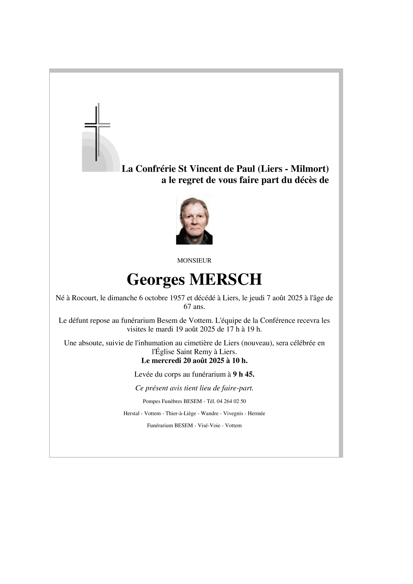 Décédé à Liers (4042) le jeudi 7 août 2025 à l'âge de 67 ans