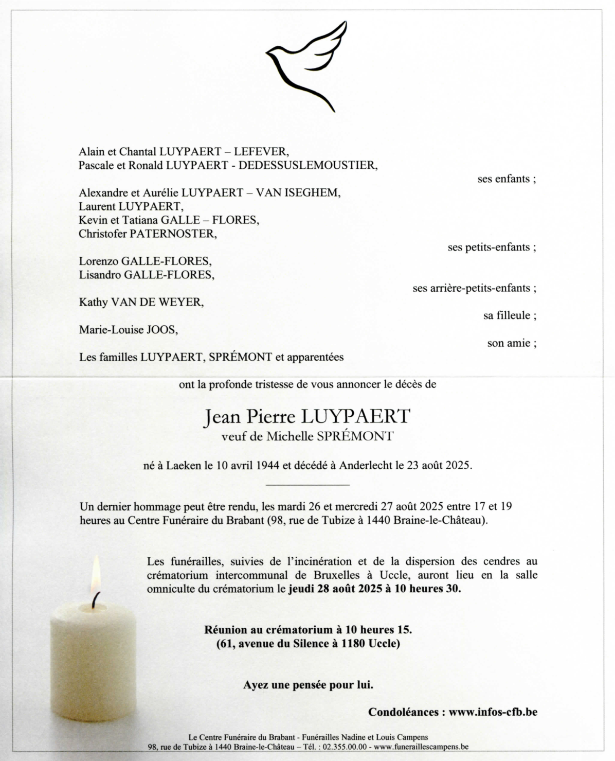 Décédé à Anderlecht (1070) le samedi 23 août 2025 à l'âge de 81 ans