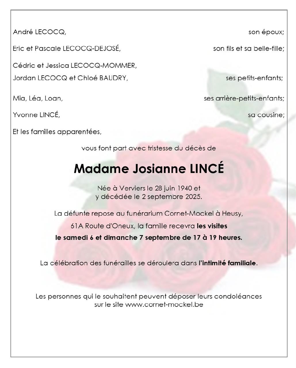 Décédée à Verviers (4800) le mardi 2 septembre 2025 à l'âge de 85 ans
