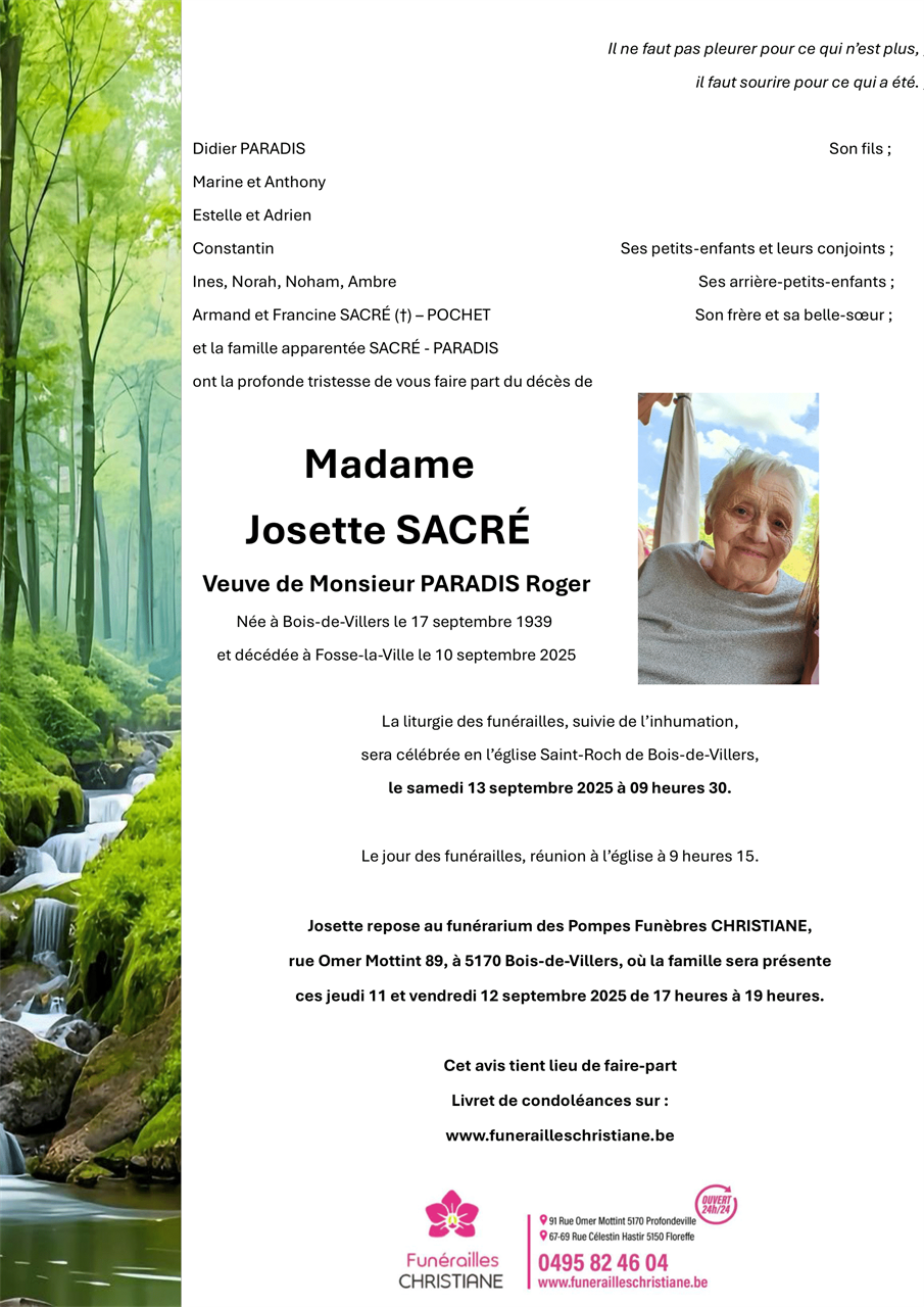 Madame Josette PARADIS née SACRÉ