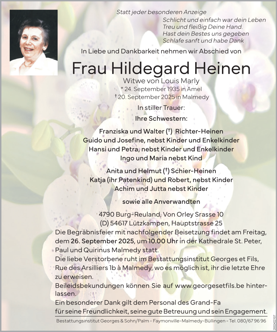 Overleden te Malmedy (4960) op zaterdag 20 september 2025 op 89-jarige leeftijd