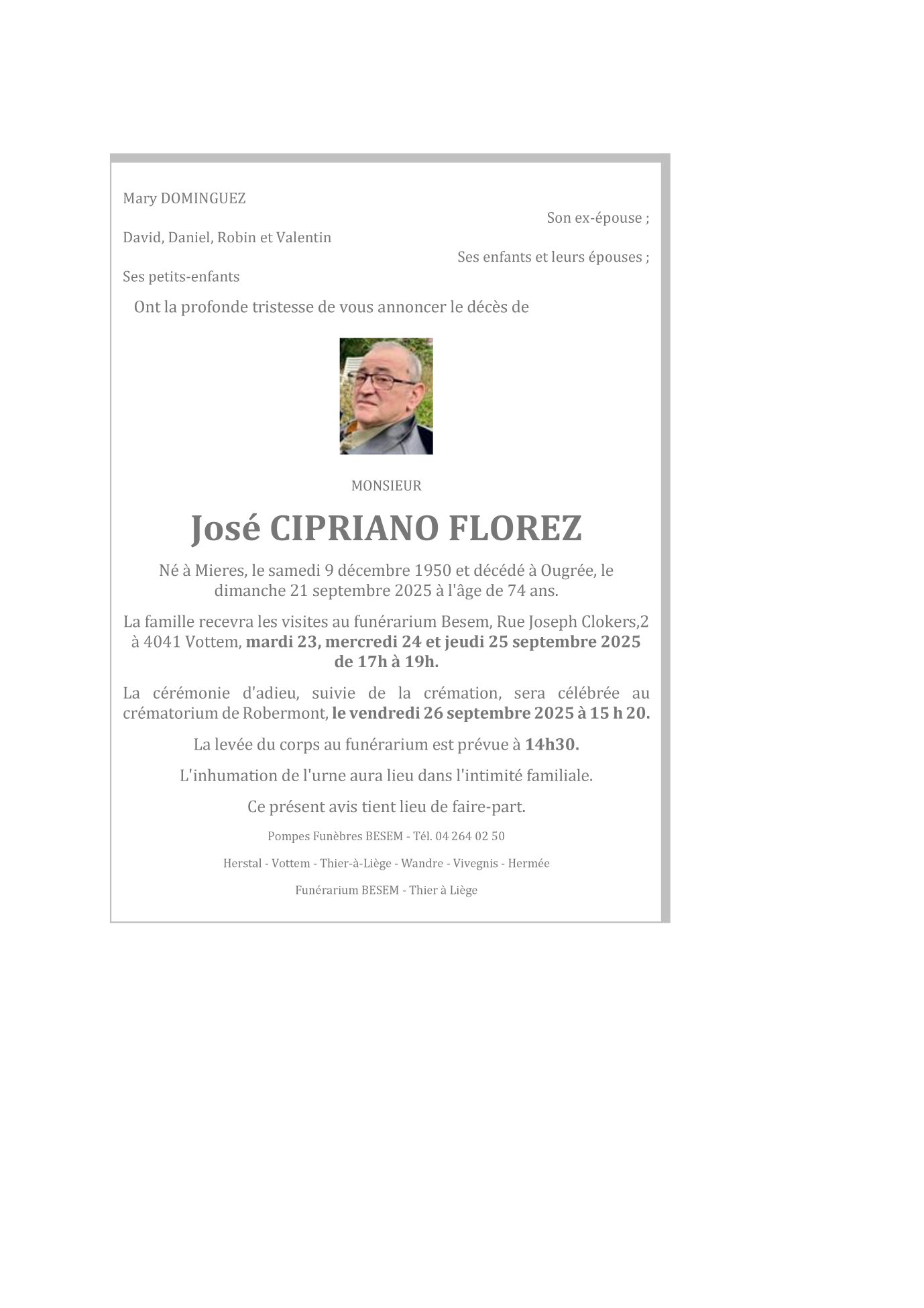 Décédé à Ougrée (4102) le dimanche 21 septembre 2025 à l'âge de 74 ans